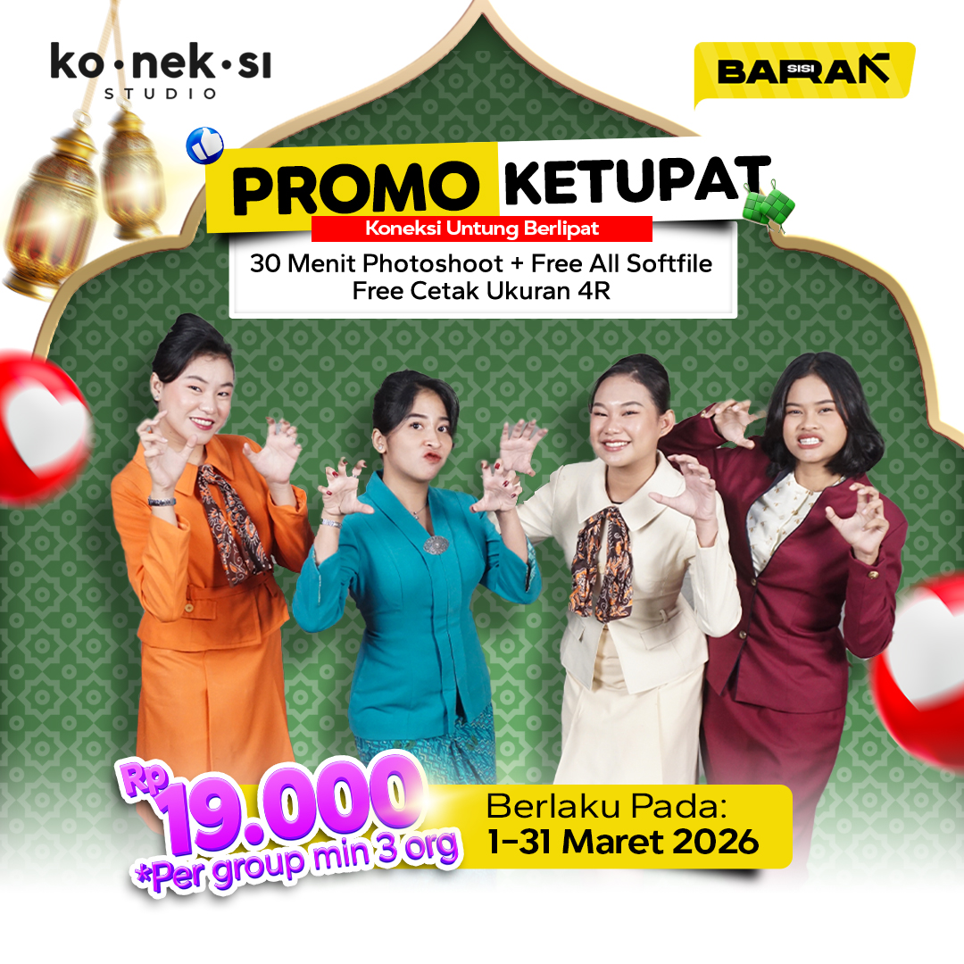 Makasih Koneksi Studio, foto - fotoku cakep - cakep semua. Studionya juga luas dan nyaman buat nunggu kalau bawa keluarga besar. Jadi kalau buat foto group atau foto keluarga bisa banget apalagi banyak pilihan backgroundnya, Sukses Terus yaa Koneksi Studio!