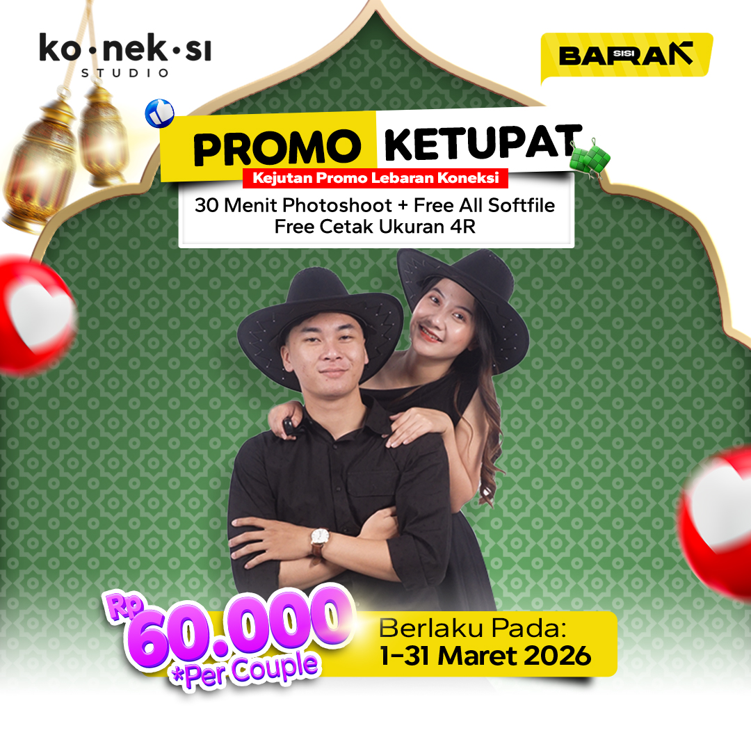 Studionya cocok banget buat foto couple kaya prewedding indoor karena tempatnya private. Aku ambil paket foto couple dan propertynya lengkap banget. Makasih Koneksi Studio udah kasih juga semua file fotonya!